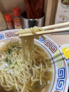 コシがあり、縮れ麺がスープとよく絡みます。あっさりめなチャーシューもなかなか。